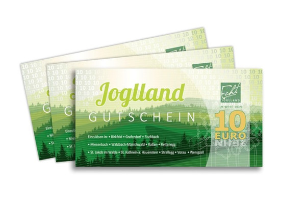 Mit dem Joglland Gutschein verschenken Sie nicht nur Freude sondern auch ein Stück Heimat! Der Gutschein bietet eine Fülle an Möglichkeiten, das Joglland in seiner unberührten Natur, vielen Ausflugszielen und regionalen Köstlichkeiten zu entdecken! Ein Aufenthalt im Joglland, bedeutet beste Luftqualität und Erholung pur!